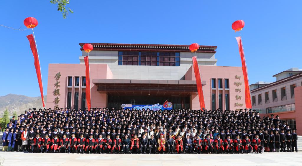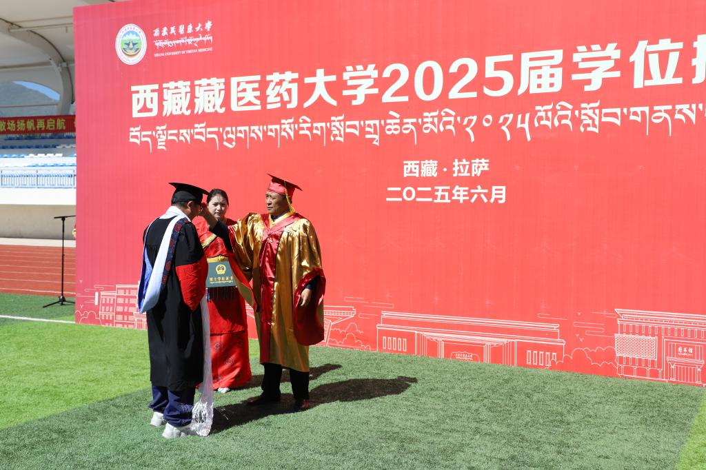 典礼后,在学校操场,米玛、边巴仓决、多杰仁青等校领导为获得学士学位、硕士学位、博士学位的毕业生拨正流苏并颁发学位证书。