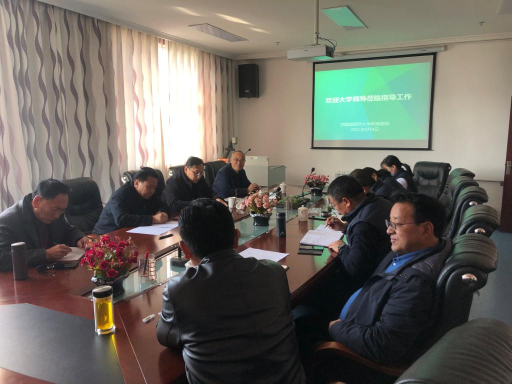 教务处处长次仁、科研处处长顿珠、研究生处处长仁青加等部门负责人和附属医院党总支书记王积瑞、院长多杰仁青及相关科室负责人陪同调研。