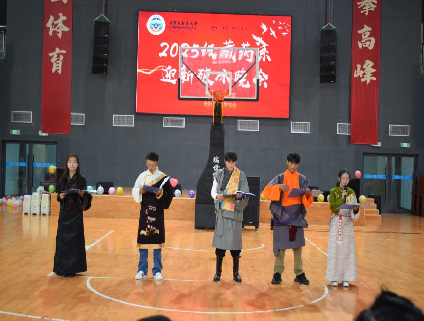 为进一步学习贯彻习近平新时代中国特色社会主义思想,以铸牢中华民族共同体意识为主线,传承弘扬中华优秀传统文化,加强推广普通话宣传,帮助2025级新生快速融入藏药系大家庭,尽快适应大学生活,增强对学校的归属感,在藏药系党总支的指导下,由系学生科、团总支主办、系学生科承办的“以心破冰、以情筑梦”主题迎新破冰活动在学校体育馆内圆满举办。此次活动由藏药系团总支书记平措央金主持、系主任顿珠教授、系党总支副书记旦增曲培、学生科、新生班主任以及全体2025级新生、23级、24级全体学生参加。