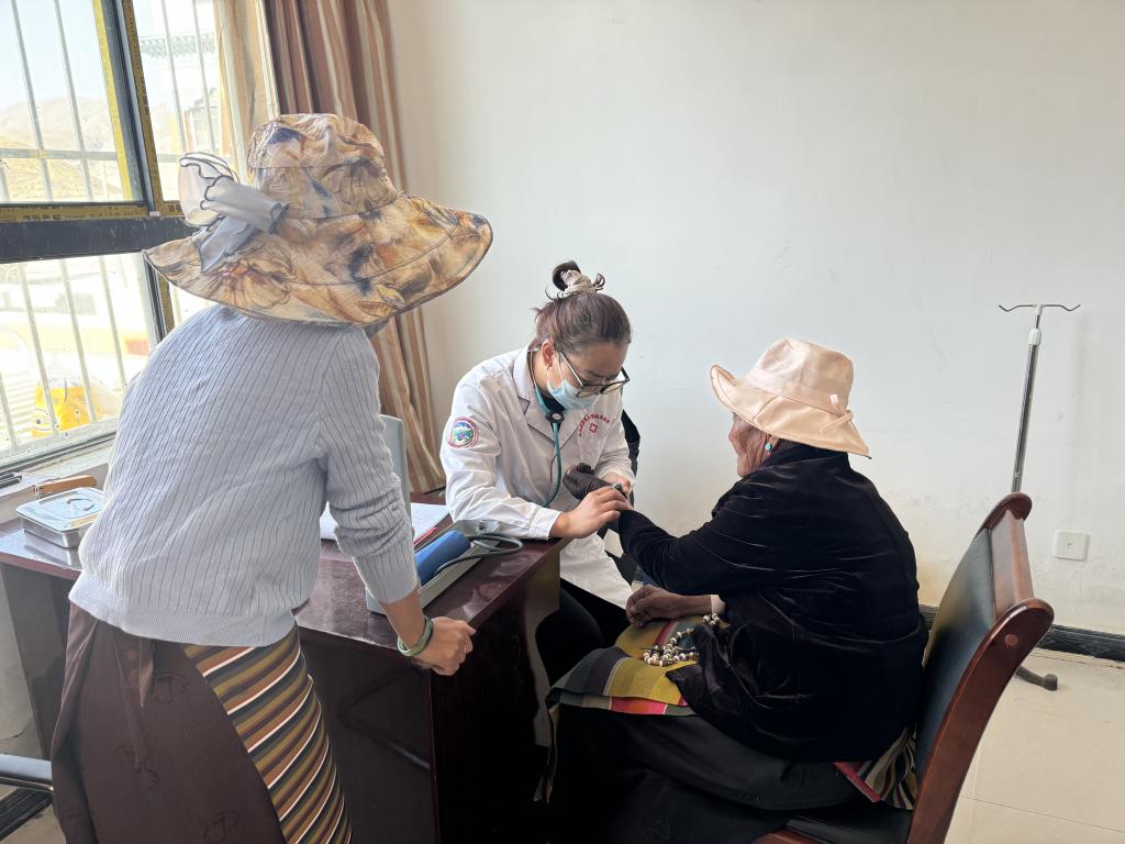 与此同时,驻村工作队员热情为村民提供免费血压测量、把脉问诊、药物发放等服务。他们认真细致地为每一位前来就诊的村民检查身体,依据病情给出专业诊断。此次义诊活动吸引了100余名群众参与,共发放价值1万余元的常规藏药,让村民在家门口就能享受到优质的医疗服务,切实解决了就医不便的难题。