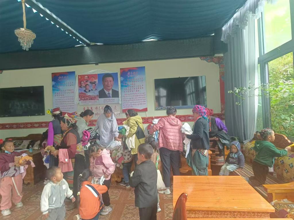 发放过程中,驻村工作队员卓央详细介绍了社会爱心人士的基本情况,并表示诚挚的感谢。随后将衣物发放给各小组组长,共计发放1-4岁小朋友衣物200多衣物件,收到衣服后,各小组组长第一时间组织群众领取衣服,拿着沉甸甸的衣物,村民们的喜悦之情溢于言表。这场活动不仅仅是一次物资的捐赠,更是一次暖心的交流,驻村工作队用实际行动践行“为群众办实事、办好事”的初心使命。